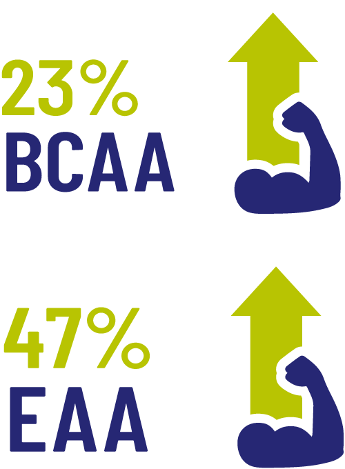 Drie belangrijke essentiële aminozuren zijn de BCAA’s leucine, isoleucine en valine. Clear Whey Isolate bestaat voor 23% uit deze BCAA’s, in de wetenschappelijk onderbouwde verhouding 2:1:1.
