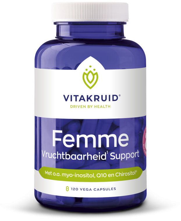 Femme Vruchtbaarheid Support is een doelgerichte multinutriëntenformule met onder andere foliumzuur (5-MTHF), speciaal afgestemd op de behoeften van vrouwen met een kinderwens. Het product is ontwikkeld ter ondersteuning van de vruchtbaarheid tot aan de conceptie.