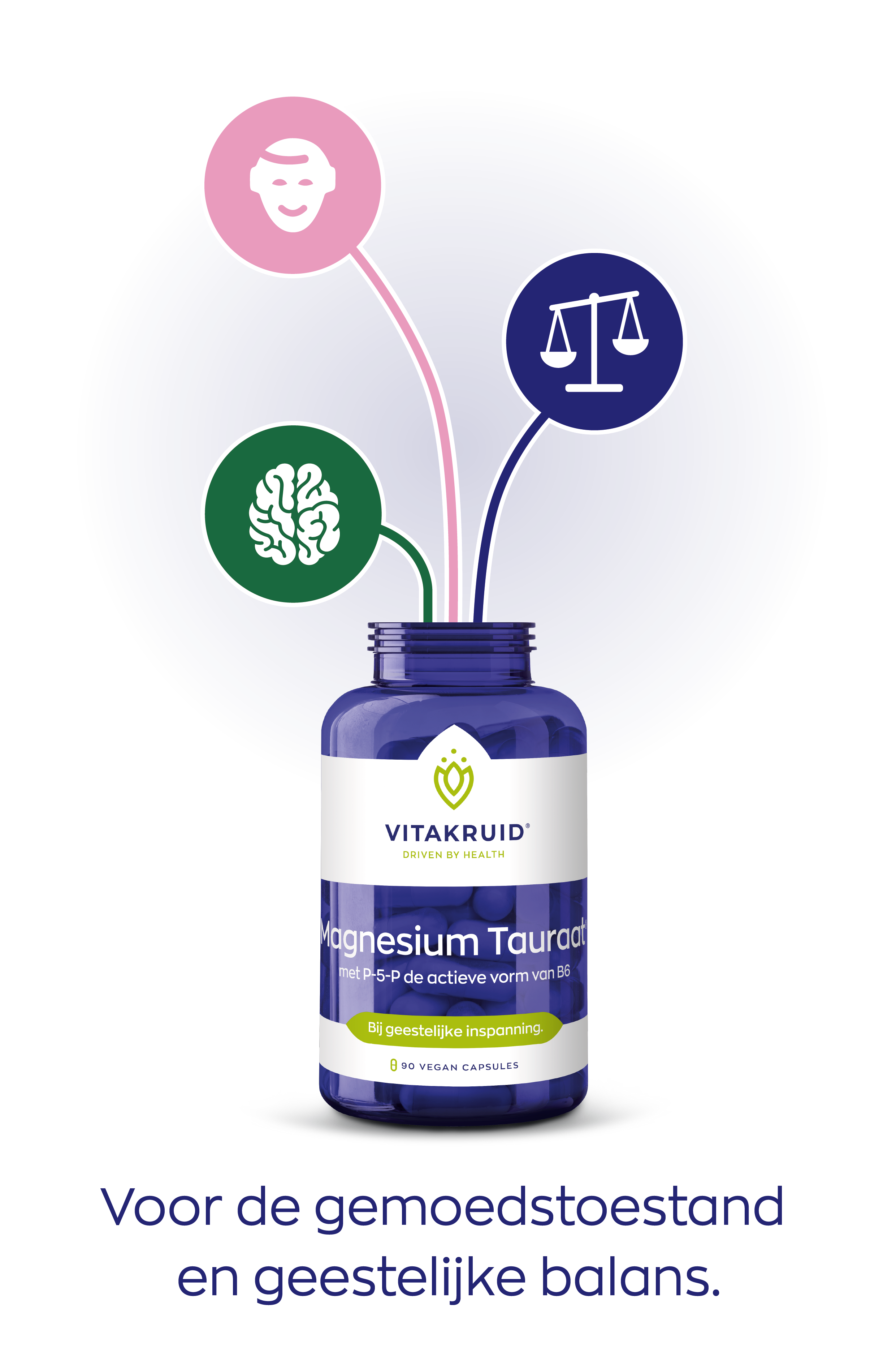 Voor de formule van Magnesium Tauraat met P-5-P is gekozen voor de biologisch actieve vorm van vitamine B6, pyridoxaal-5-fosfaat (P-5-P). P-5-P heeft een hoge biologische beschikbaarheid en wordt daardoor direct door het lichaam gebruikt. Bovendien is P-5-P de meest veilige en goed verdraagbare vorm van vitamine B6. Daarmee sluit P-5-P goed aan bij de hoogwaardige samenstelling van magnesiumtauraat. Aanvullend ondersteunt vitamine B6 de geestelijke balans en gemoedstoestand, onder andere via de regulatie van hormonen.